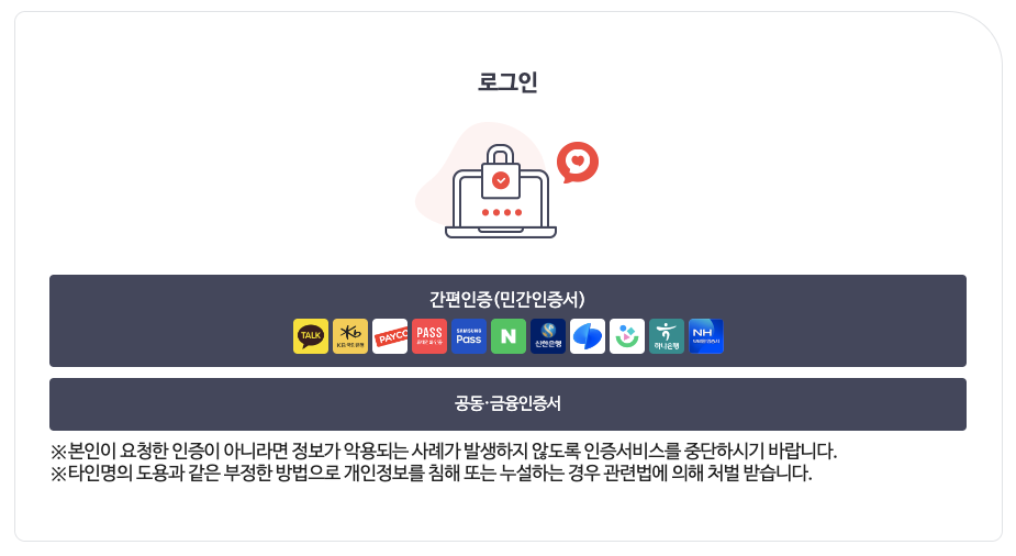2. 본인인증 후 로그인(공인인증서나 간편인증을 사용하여 로그인한 후에 환급금을 신청해주시기 바랍니다.)